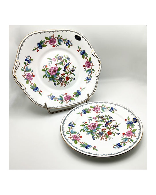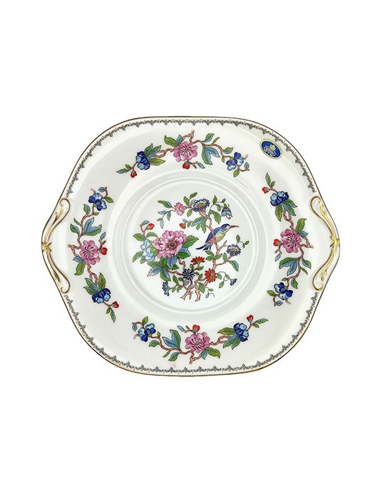Bandeja de postre cuadrada en porcelana inglesa Fine Bone China, modelo Pembroke con filo en oro. Vajilla clásica, típica inglesa. Lavado a mano aconsejable, fabricación de gama alta. Fine Bone China es la porcelana fina Aynsley. Nuestros embalajes están garantizados contra todo riesgo de rotura.