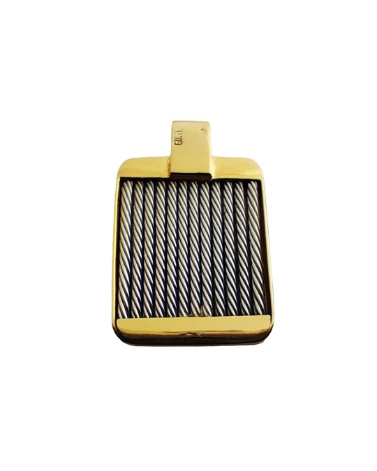 Colgante placa rectangular cable acero y oro amarillo 750 (18 quilates), el cable está montado a mano y la parte en oro es maciza y soldada, fabricación artesanal de gama alta. Balia fija.