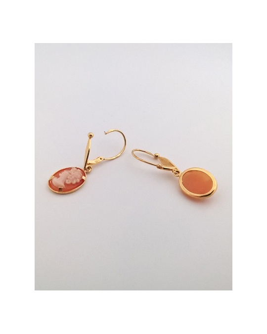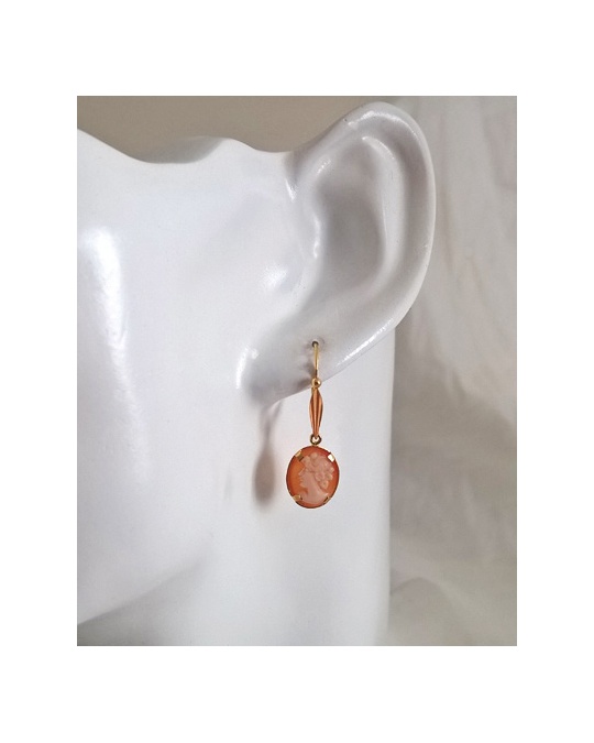 Pendientes dormilonas con camafeos oval en oro amarillo 750 (18 quilates), aretes largos y articulados de talla mediana, muy agradables de llevar. Joya clásica y atemporal, idea de regalo para pin-up.