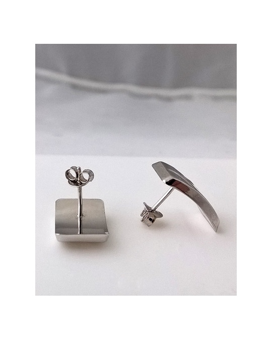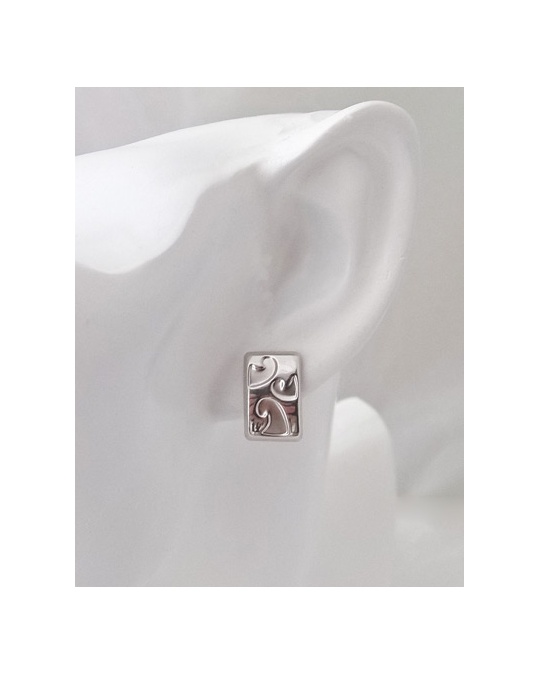 Pendientes originales de oro blanco 750 milésimas (18 quilates) con arabescos, acabado mate y brillante, muy cómodos, forma ligeramente curvada, cierre a presión con tope de seguridad. Joya femenina, intemporal, fabricación francesa, edición limitada.