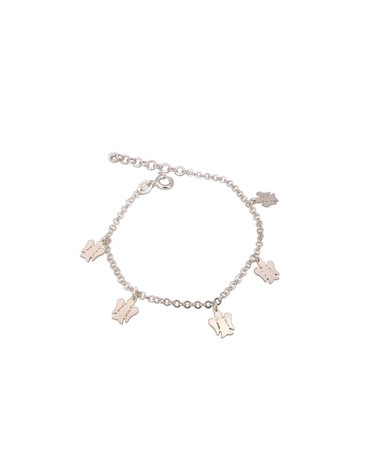 Pulsera modelo 5 angelitos planos, plata de ley, malla forzada redonda con cadenita ajustable de 15,5 a 18,5 cm, cierre reasa. Joya fina y discreta, para mujer, niña u hombre con muñeca pequeña.