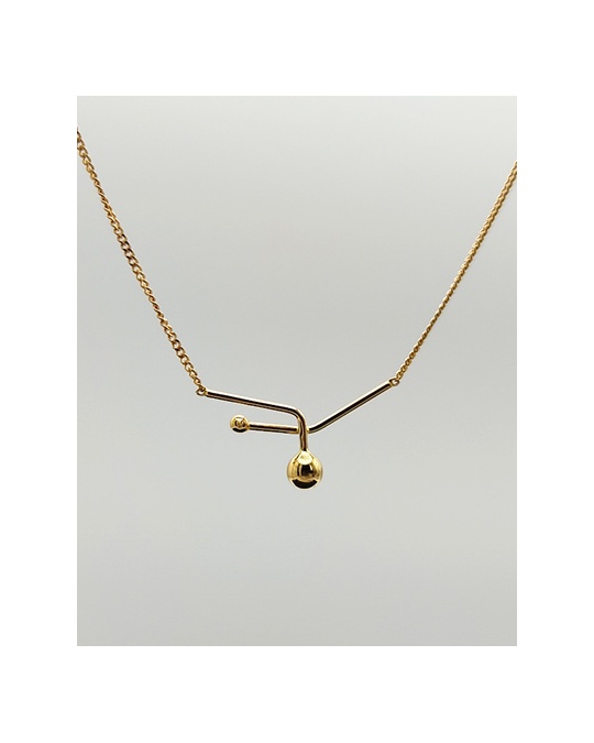 Collier fin en or jaune 750 millièmes (18 carats) motif central barrette avec boules, ras de cou, chaine maille gourmette, fermoir anneau ressort. Bijou minimaliste, tendance et discret, fabrication française.
