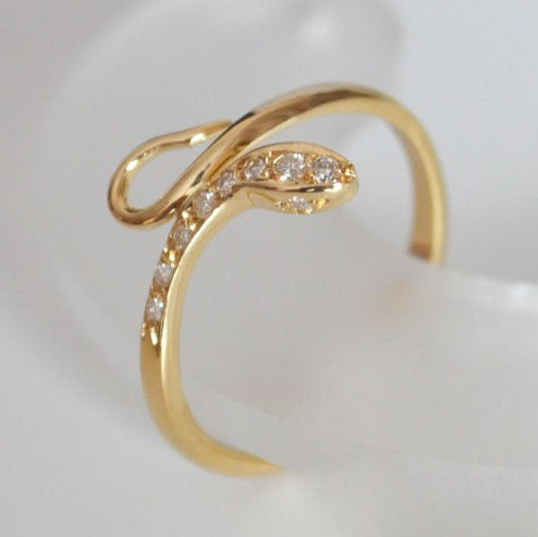 Bague fine serpent diamants or jaune 750