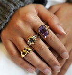 Bague iolite et aigues-marines carrées 2 ors 750