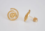Modernes boucles d’oreilles en or jaune 750 millièmes (18 carats), modèle spirale finition satinée, rondes, très agréables à porter, fermoirs poussettes, ces boucles font beaucoup d'effet. Boucles fabriquées en France.