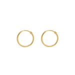 Petites créoles en or jaune 750 (18 carats) creuses, fil rond, épaisses, solides, rigides, faciles à mettre. Boucles intemporelles, discrètes, bijou pour femme, homme et enfant. Fabrication française de qualité.