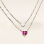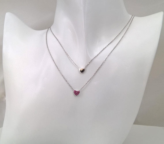 Collier double Coeur zirconiums roses argent 925 rhodié