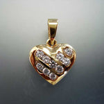 Ravissant pendentif forme coeur, en or jaune 750 millièmes (18k) et zirconiums, serti rail.
