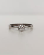 Bague solitaire diamant rond taille brillant de 1r choix, or blanc 750 millièmes (18 carats), serti sur 6 griffes, fabrication artisanale. Bijou discret, chic et intemporel, le grand classique, idéal comme bague de fiançailles. Pour d'autres tailles merci de nous contacter.