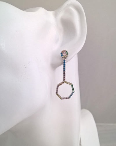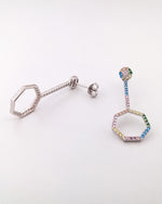 Boucles d'oreilles Hexagone zircons multicolores argent 925