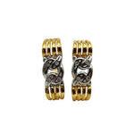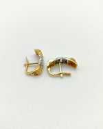 Très jolies boucles d’oreilles bicolores en or 750 millièmes (18 carats), serties de 8 petits diamants. Boucles modèle maillons, fermoirs de sécurité, très agréables à porter, épousent parfaitement le lobe, style classique et intemporel.