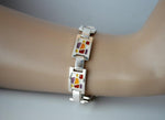 Très beau bracelet en argent massif 925 et émaux au feu couleurs ocres, toutes les mailles sont soudées, très agréable à porter, fabrication haut de gamme fait main, collection en exclusive inspiration Gaudi.