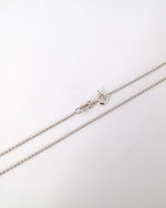 Chaîne maille boules massives en or blanc 750 millièmes (18 carats), chaîne fine et discrète, souple, ras de cou, fermoir anneau ressort.