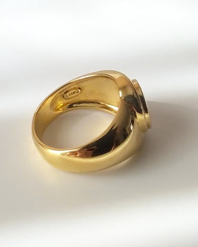 Cette chevalière est de taille moyenne, ce qui la rend discrète et très agréable à porter. Forme de l'anneau bombé, bijou pour homme, massif, fabrication haut de gamme française, création A. Roure.