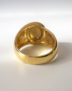 Très belle chevalière pour homme en or jaune 750 millièmes (18 carats), modèle blason ovale gravé à la main qui rappelle les bagues portées par la Noblesse hantant.