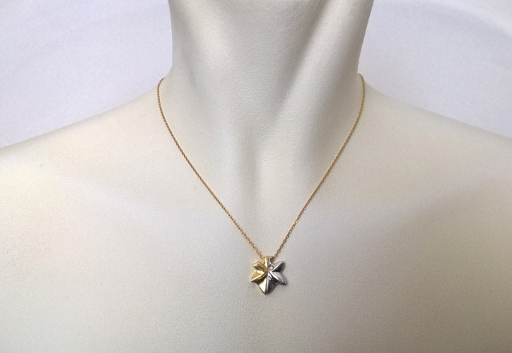 Collier Feuille partagée diamants 2 ors 750