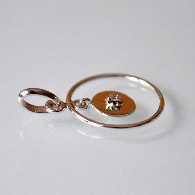 Pendentif Vintage en or blanc 750/1000 (18 carats) serti d'un petit diamant, modèle cercle articulé, bijou original et moderne, pendentif pour femme, fabrication artisanale française fait main, massif, bélière épaisse et très solide.
